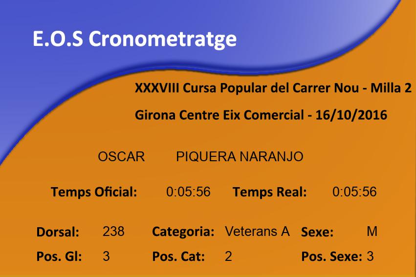 | 3 | 238 | PIQUERA NARANJO OSCAR | 0:05:56 | 0:05:56 | ||