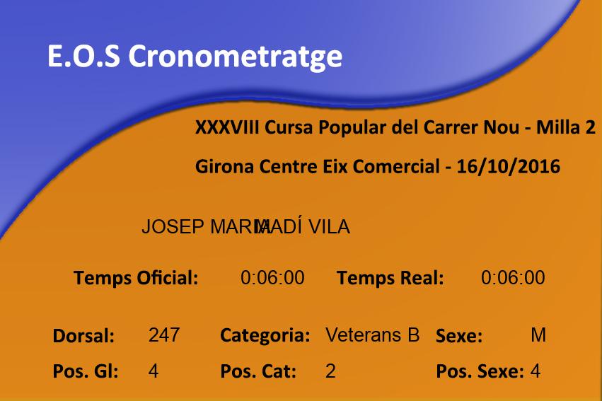 | 4 | 247 | MADÍ VILA JOSEP MARIA | 0:06:00 | 0:06:00 | ||
